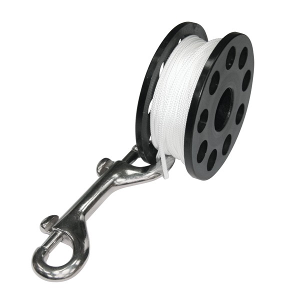 Пальцевая катушка (шпуля) используется как для декомпрессионных остановок, так и для перестежек между ходовиками в пещерах, для поиска в условиях отсутствия видимости и т.п. Длина линя 33 метра рекомендуется как минимальная для использования в качестве катушки безопасности в пещерном дайвинге. Рекомендуются 2 катушки безопасности (33 и 17 метров). В комплекте: катушка из делрина, нейлоновый линь 33 метра, карабин двусторонний 3,75" из нержавеющей стали.