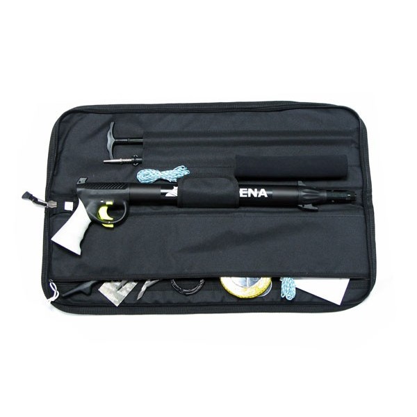 Сумка-чехол для пневматического ружья SCORPENA предназначается для переноски и хранения подводных пневматических ружей, имеющих торцевое расположение рукоятки. В этом чехле как в контейнере помещается полностью снаряженное ружье, с катушкой, гарпунами, наконечниками, линем, насосом и подствольным фонарем, а также паспорт на ружье ну и конечно ЗИП (Запасные части, Инструменты, Принадлежности ), и другие мелочи. Чехол защитит ваше оружие от песка, пыли и механических повреждений. Внутри чехла имеются специальные места для удобного размещения всего сопутствующего оборудования для ружья. Для аксессуаров предназначен накладной карман на молнии, для запасных гарпунов предусмотрены два отделения и крепление для ружья на широкой липучке.