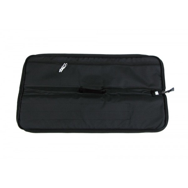 Сумка выполнена из прочного материала черного цвета. Для защиты при падении и для придания формы между внутренним и внешним слоями проложен изолирующий слой, толщиной 8мм. По всему периметру чехла расположена молния, а для удобства переноски предусмотрена обрезиненная ручка.
