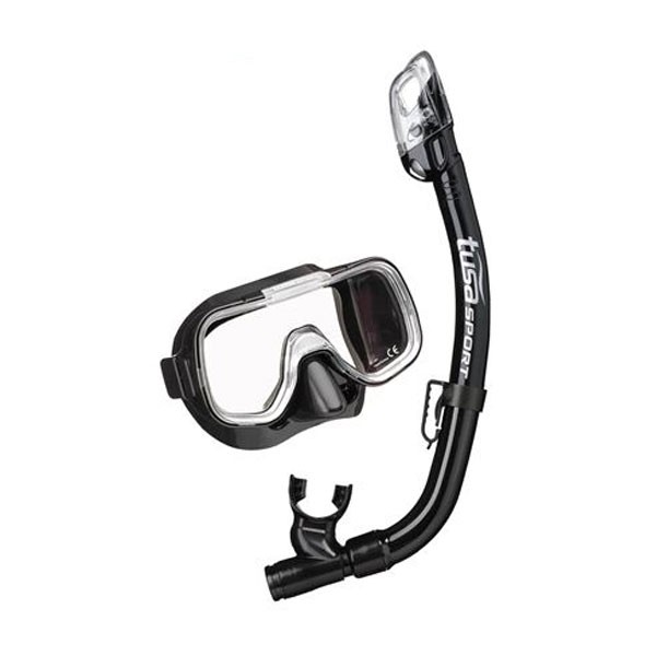 Комплект UC-2022 MINI-KLEIO DRY (маска+трубка), TUSA Sport черный силикон