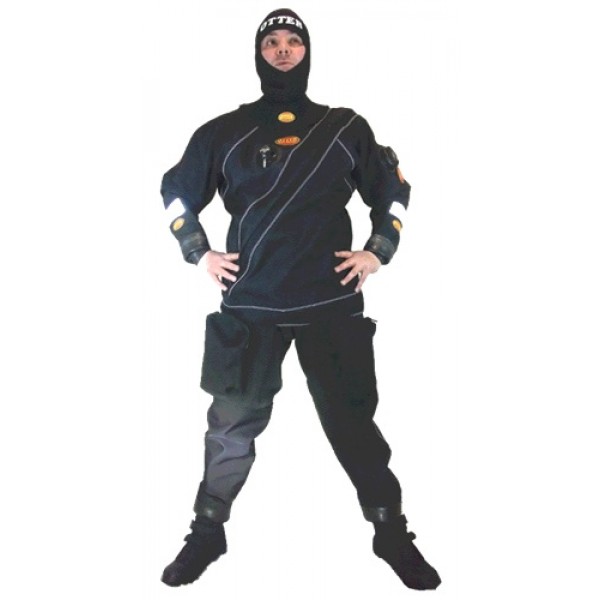Прочный и стильный костюм - 2013 года.Обеспечивает полную свободу движения. Триламинат состоит из кордуры, бутиловой резины и полиэстера на внутренней поверхности. Телескопический торс и фронтальная герметичная молния с дополнительной защитой обеспечивает удобство при одевании.
