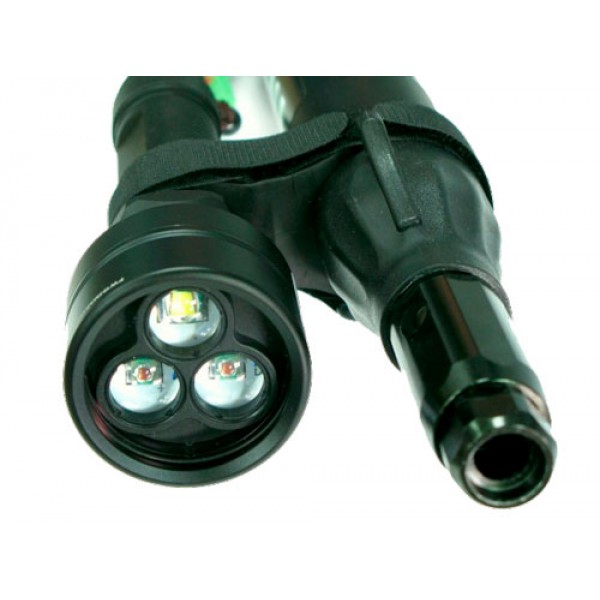 Наилучшим образом этот адаптер подходит для ружей с диаметром ствола 25 - 40 мм, то есть как для арбалетов, так и для пневматов. Корпус фонарика может быть не только круглого сечения (см. фото), но диаметром не более 30 мм. Отличительная особенность этого крепежа в том, что с его помощью фонарь может быть установлен на ружьё или снят с него в считанные секунды - благодаря простой схеме закрепления и в любых полевых условиях или даже на воде - благодаря отсутствию необходимости в использовании какого бы то ни было инструмента.