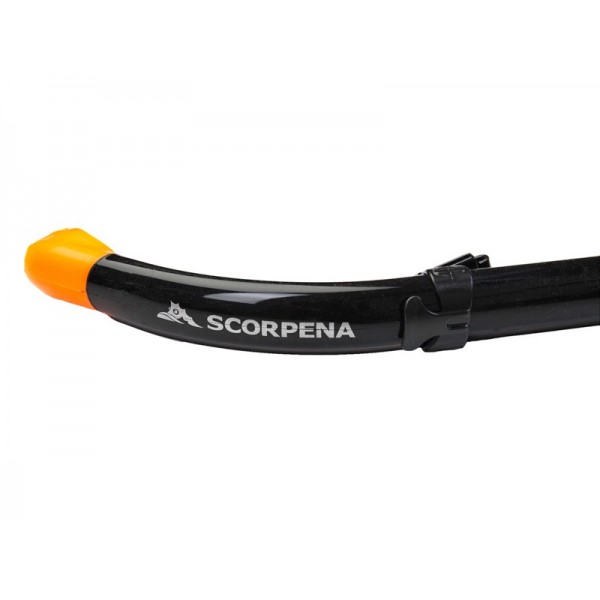 Трубка SCORPENA S изготовлена из мягкого пластика с гипоалергенным силиконовым загубником. Трубка позволяет уверенно маневрировать при охоте – благодаря сверхгибкой конструкции, и под корягами или камышами, и под завалами, с ней можно нырять, не опасаясь, что трубка зацепившись за препятствие, сорвет маску с лица или вывернет изо рта загубник, пока вы плаваете в поисках добычи. Также трубка практически не издает шума при соприкосновении с камнями или ветками, что является важным фактором при охоте на осторожную рыбу. Трубка обладает нижним клапаном для очистки от воды, а также верхним клапаном для защиты от заплескивания при волнении на поверхности. Удобная форма загубника сводит к минимуму напряжение мышц челюсти, а овальная форма поперечного сечения позволяет увеличить диаметр без риска образования застойных зон, что существенно облегчает дыхание. Съемный загубник позволяет замену в случае повреждения, без необходимости менять всю трубку.
