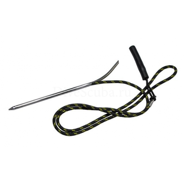 После удачного выстрела охотник может одной рукой освободить иглу из замка. Рыба пронизывается этой иглой, гарпун освобождается и игла опять застегивается. Загнутый конец иглы не позволит рыбе сойти, если охотник, не успев застегнуть иглу, случайно ее выронит. Несмотря на все эти особенности, рыбу легко снять с кукана.