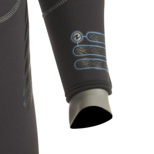- Двойная обтюрация на запястьях и лодыжках из 2,5 мм неопрена «гладкая кожа» и 3,5 мм (для монокостюма 5,5 мм) или 4,5 мм (для монокостюма 7 мм) неопрена с застежкой на молнии.