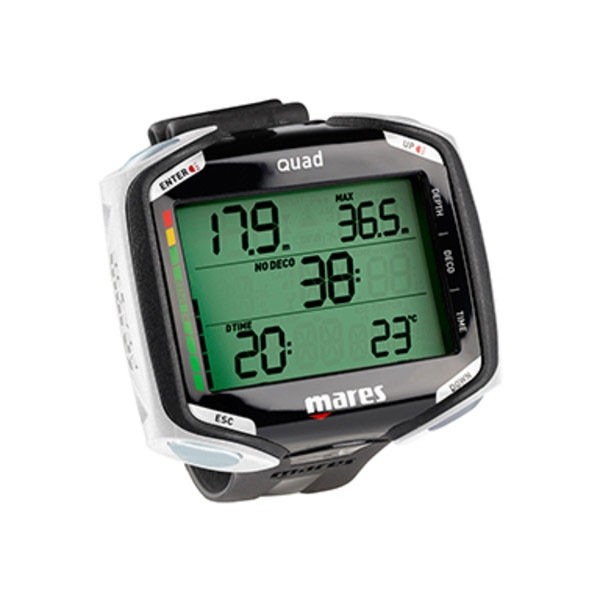 Новый наручный компьютер Mares Quad. Широкий дисплей с улучшенной читаемостью показаний. Эргономичный дизайн и понятный интерфейс Возможность обновления программного обеспечения. Mares Quad разработан с учетом использования при технических погружениях вплоть до уровня Extended Range. Большой размер дисплея был одним из основных требований . В целях оптимизации читаемости в любых обстоятельствах , особое внимание было уделено размерам и яркости цифр , интенсивность подсветки и максимальный угол обзора.
