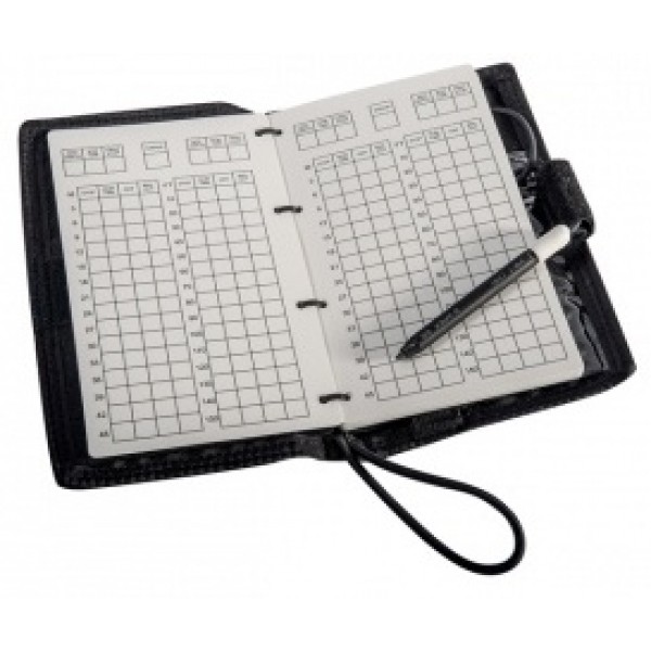 Блокнот для записей под водой с водостойкими страницами, карандашом и эластичным креплением карандаша. Обложка из покрытого полиуретаном баллистического нейлона 2250 den. Внутренние прозрачные карманы с застежкой велькро (velcro) на задней обложке для важных аксессуаров (таблицы, проверочные листы, схемы).