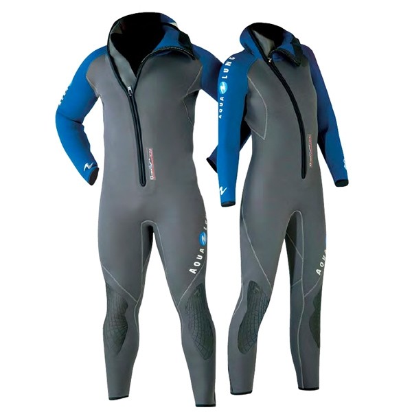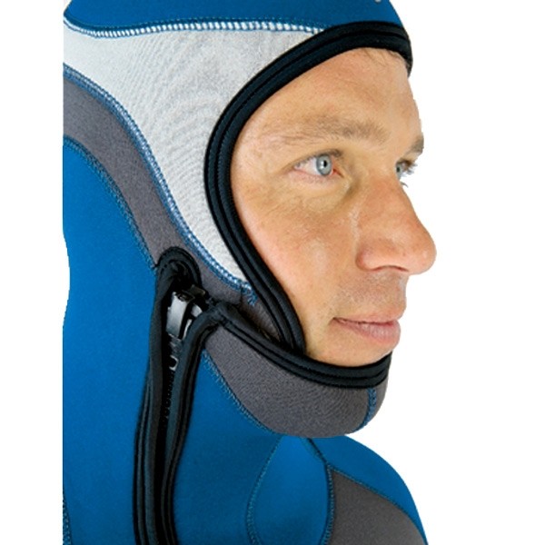Монокостюм толщиной 5.5 мм со встроенным шлемом.