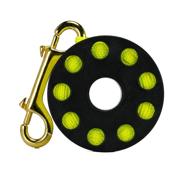 Катушка с 3-мм желтым линем длиной 50 м и двухсторонним латунным карабином. Катушка-шпуля предназначена для погружений в пещеры или затонувшие корабли и запуска буя.