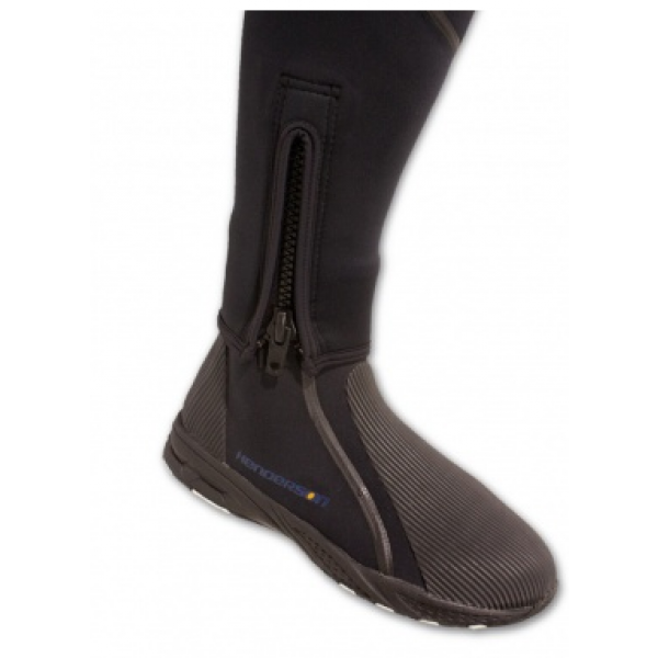 Боты AquaLock сделаны по тем же канонам, что и гидрокостюмы этой серии. Каждый шов на ботах сначала дважды проклеивается, а затем прошивается изнутри и снаружи. При этом наружные стежки покрываются специальной водоотталкивающей пленкой AquaLock, которая помогает предотвратить проникновение воды внутрь, а также защищает стежки от повреждений и расхождения. Внутренняя часть ботов AquaLock покрыта флисом золотистого цвета. Он быстро сохнет и очень приятен на ощупь. Помимо этого он еще и облегчает процесс одевания и снятия ботов за счет улучшенного скольжения. Внутренняя часть оснащена тремя силиконовыми полосками-уплотнителями, которые сочетаются с аналогичными полосками на внутренней части голенища гидрокостюмов AquaLock. Это необходимо для плотного контакта между этими деталями экипировки. Отдельно стоит упомянуть прочную молнию, которая прослужит много лет без особых проблем. Так же конструкция предусматривает фиксацию бегунка в верхнем положении, чтобы предотвратить расстегивание бота. Снаружи присутствует фирменная отделка ламинированными деталями Aquasilk, которые так же можно встретить на шлемах серии Henderson H2.