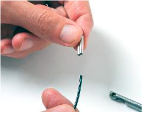 Продеваем конец монолиня в зажим Затем продеваем его через отверстие в
