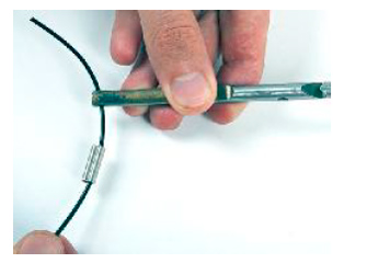 Делаем петлю и заводим конец монолиня обратно в зажим  При помощи клещей или пассатижей фиксируем зажим