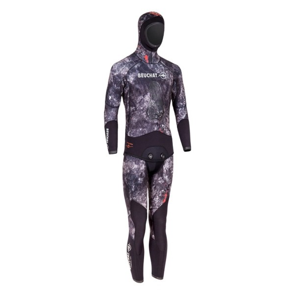 Костюм-двойка для интенсивной подводной охоты, разработанный на основе опыта Beuchat, бренда, который изобрел изотермический костюм для подводной охоты. Он имеет новый камуфляж в черных тонах на основе Trigocamo Wide с его 3D-реализмом и эффектом смягченного фона, обеспечивающим глубину резкости.