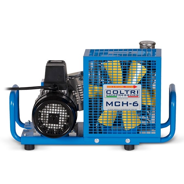 Компрессор электрический Coltri Sub MCH-6 EM. Малогабаритный электрический компрессор Coltri Sub MCH-6 EM для дайвинга или пейнтбола. Мобильный, легкий и экономичный MCH 6/EM с однофазным асинхронным двигателем SOGA рассчитан на подключение к сети 220 В. Рама компрессора открытого типа выполнена из стали и может выдвигаться при замене двигателя на бензиновый. Защитные решетки приводного ремня и охлаждающего вентилятора. Компрессор высокого давления оснащен принудительным воздушным охлаждением и четырьмя ступенями давления.
