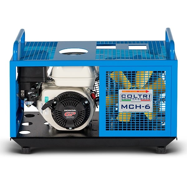 Компрессор Coltri Sub MCH 6/SH Compact. Малогабаритный компрессор MCH 6/SH Compact незаменимый для дайвинга или пейнтбола. Мобильный, легкий и экономичный MCH 6/SH Compact с бензиновым двигателем внутреннего сгорания с низким уровнем шума и вибраций.Рама компрессора закрытого типа выполнена из стали и имеет ручки для переноски сверху. Защитные решетки на основных узлах агрегата. Компрессор высокого давления оснащен принудительным воздушным охлаждением и четырьмя ступенями давления.