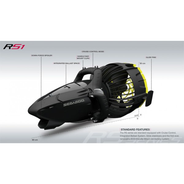 Инновационный дизайн скутеров-буксировщиков новой серии RS гарантирует захватывающее подводное путешествие. Литиево-ионная батарея используемая в новой серии дает этим скутерам большую эффективность, ускорение и максимальный пробег. Литиево-ионновые батареи имеют более высокий коэфициент мощности к весу, то есть при заданом весе такая батарея обеспечивает большую мощность чем традиционная свинцовая или никель-кадмиевая батарея.