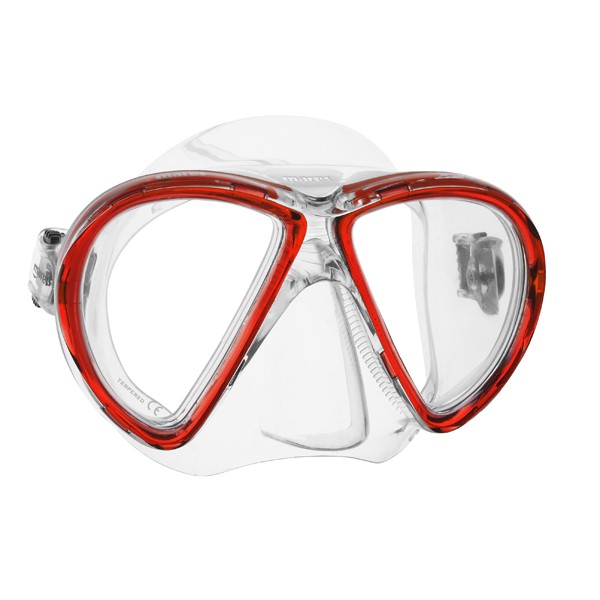 В передней части обтюратора X-vu расположен ряд горизонтальных амортизаторов, демпфирующих перемещение маски относительно лица дайвера. Это уменьшает усталость лица и лба от сдавливания, что особенно ценно при длительных погружениях. Новый Х-образный ремешок ещё больше улучшает посадку маски, а двухкнопочные пряжки позволяют быстро и без труда отрегулировать его длину.